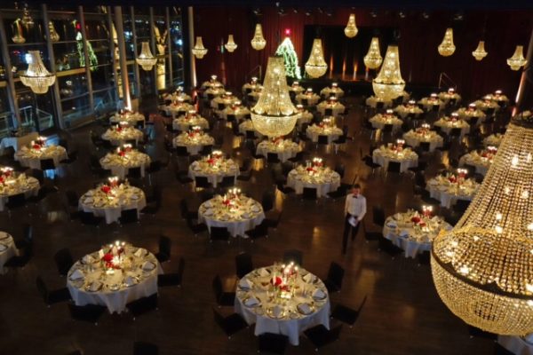 Store lysekroner i SSE Arena, Wembley for André Rieu. 64 lysekroner til maestroens koncert i London.