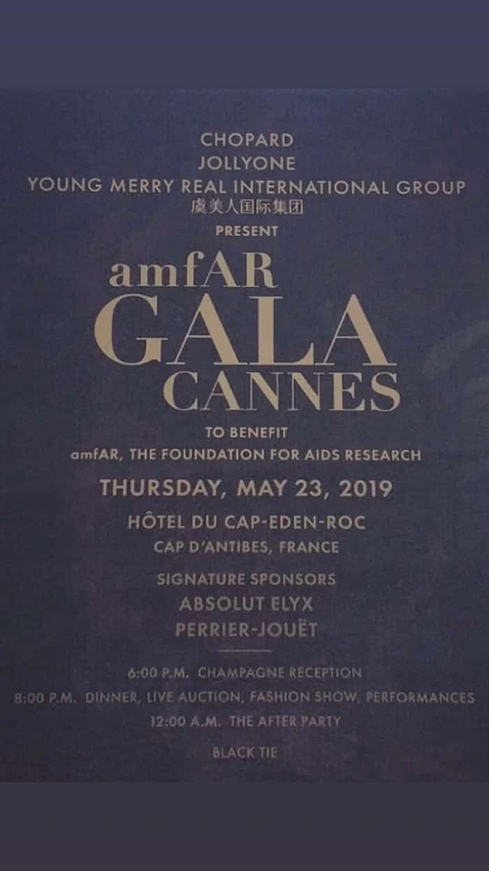 Missionen for amfAR er at stoppe den globale AIDS-epidemi gennem innovativ forskning. Under den årlige galla under Cannes Film Festival organiserede amfAR deres galla i og omkring det prestigefyldte Hôtel du Cap Eden Roc i Antibes.
