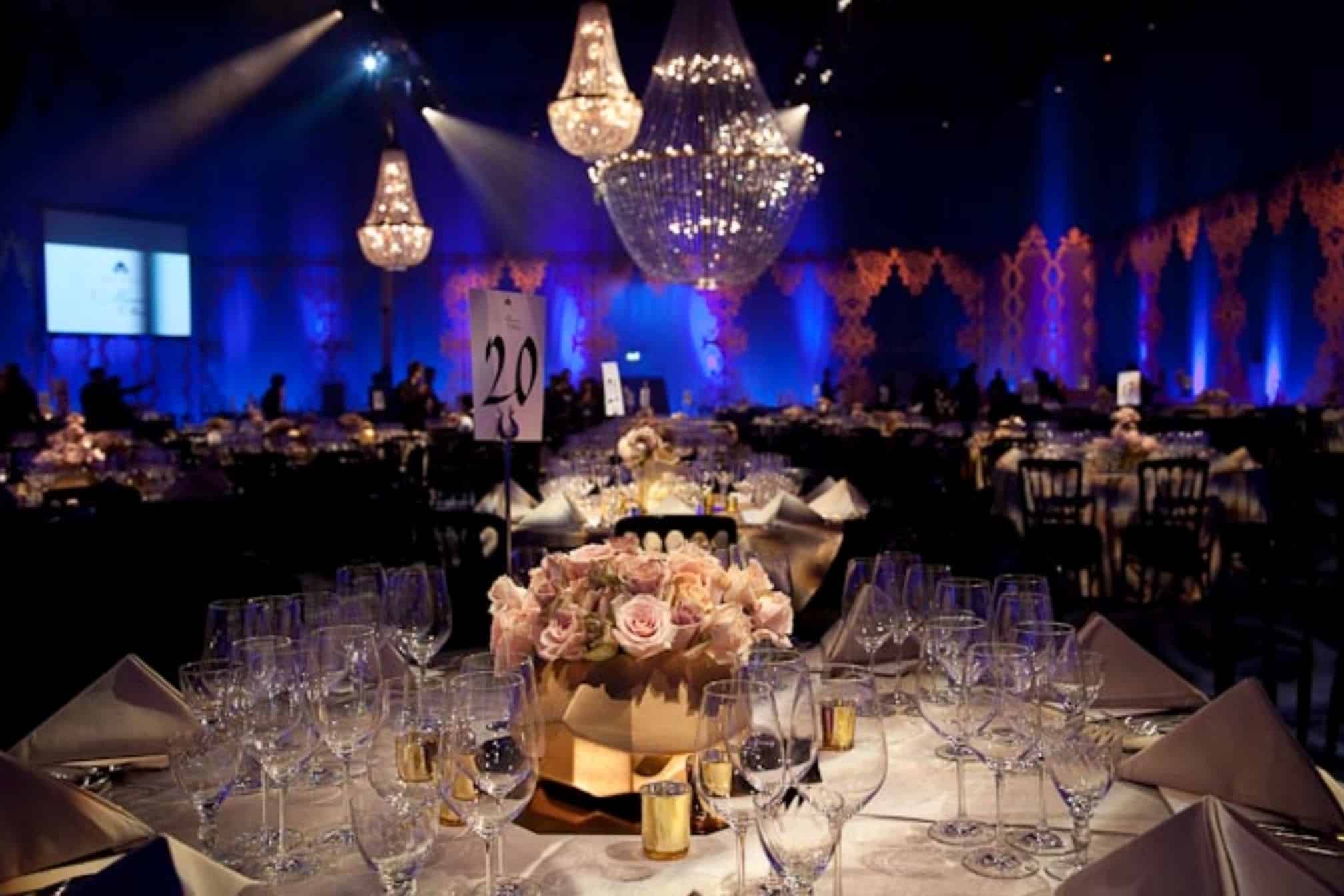 Kroonluchterverhuur transporterede og monterede Type-4 og flere Type-3 lysekroner i London til dette arrangement. Som supplement blev Europas største lysekrone (Type-6) monteret i den stemningsfulde sal og oplyst med en RGB-laser.