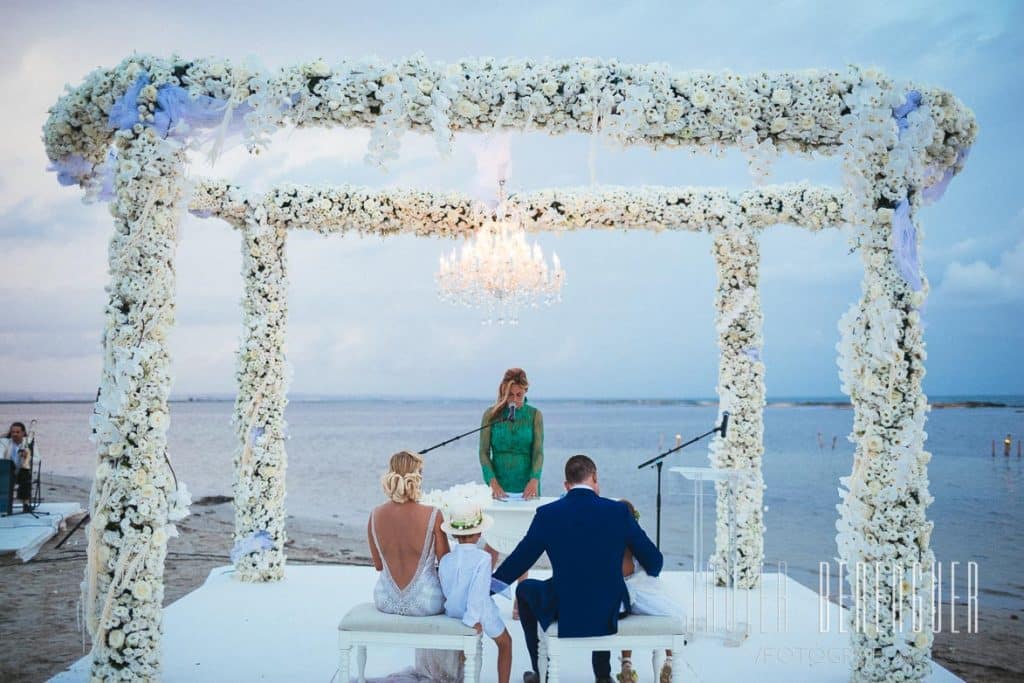 Det spiller ingen rolle, om du har simple blomsterdekorationer, en bue eller et baldakin. At placere en lysekrone nær alteret er en fremragende måde at tilføje lidt ekstra flair til jeres løfteudveksling.