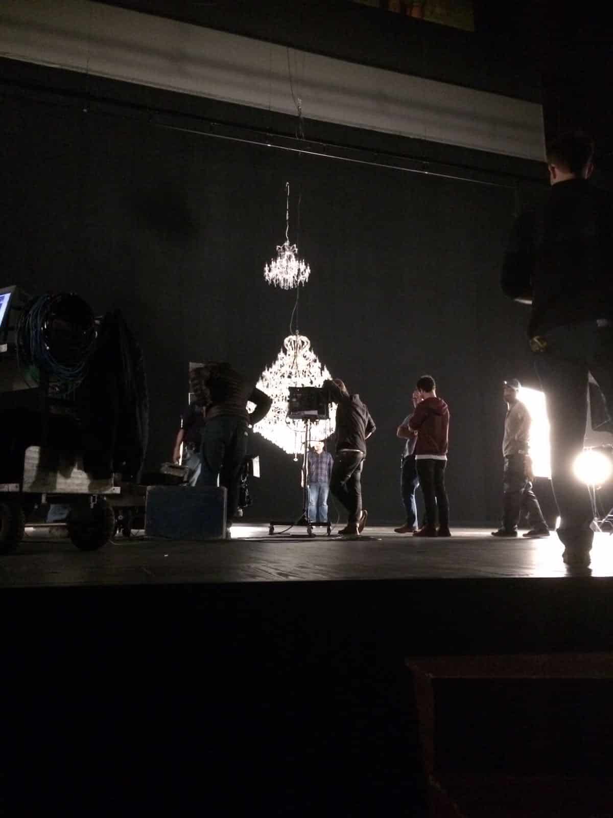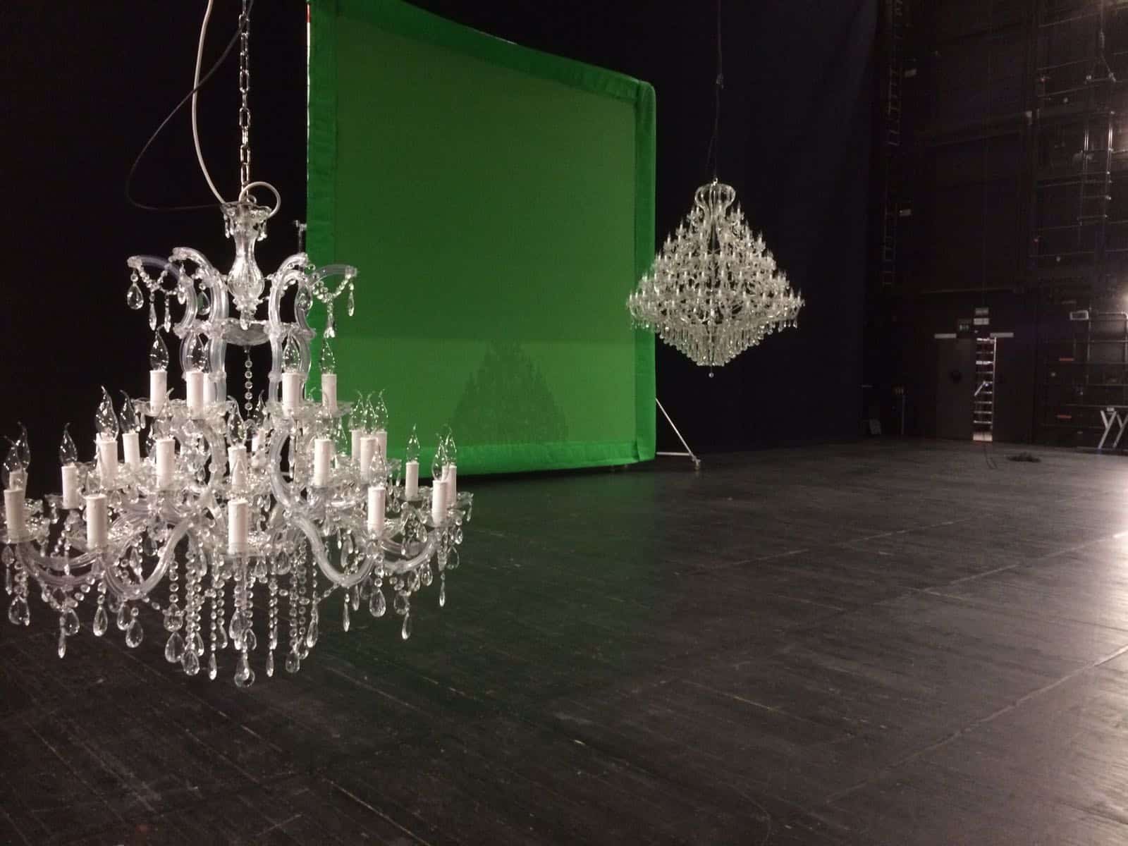Dekoration til film med vidunderlige lysekroner. For nylig leverede vi 14 lysekroner som dekoration i en film. Filminstruktører bruger vores lysekroner til at dekorere et filmset eller en reklame. Nogle gange kræver et filmset et fantastisk blikfang, som ikke er tilgængeligt på optagelsesstedet. Vores krystallysekroner er yderst velegnede til billedoptagelser. Tidligere har vi leveret vores produkter til reklamer for ING, Amstel, C\&A, Cartier, Philips Senseo og udenlandske film. Til en ny film er vores krystal-blikfang igen blevet brugt. Optagelserne fandt sted i El Escorial, et teater nær Madrid. Nedenfor kan du se et par produktionsbilleder.