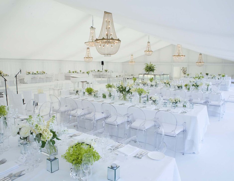 Smukke bryllupsdekorationer til et telt eller til udsmykning af en begivenhed. Til et bryllup i East Sussex har vi dekoreret et telt med vores Type-3 og Type-4 lysekroner.