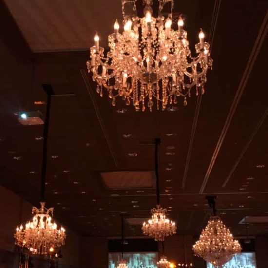 Eksklusiv gallaaften: En eksklusiv nytårsgallaaften afholdes årligt på det luksuriøse Barceló Asia Gardens Hotel i Finestrat. Under dette arrangement nyder gæsterne en fremragende middag og en overdådig fest. Temaet for dette år var Great Gatsby. Dette 20’er-tema kunne ikke undvære smukke krystallysekroner. Vores lysekrone-specialister monterede 15 type-MT-30 lysekroner, fordelt over hele salen. En 3 meter høj Maria Theresa-lysekrone, vores Type-MT108, hang i midten af rummet. På middagsbordene placerede vi vores sølvlysestager med levende lys. Nedenfor ses nogle billeder af galladekorationen.